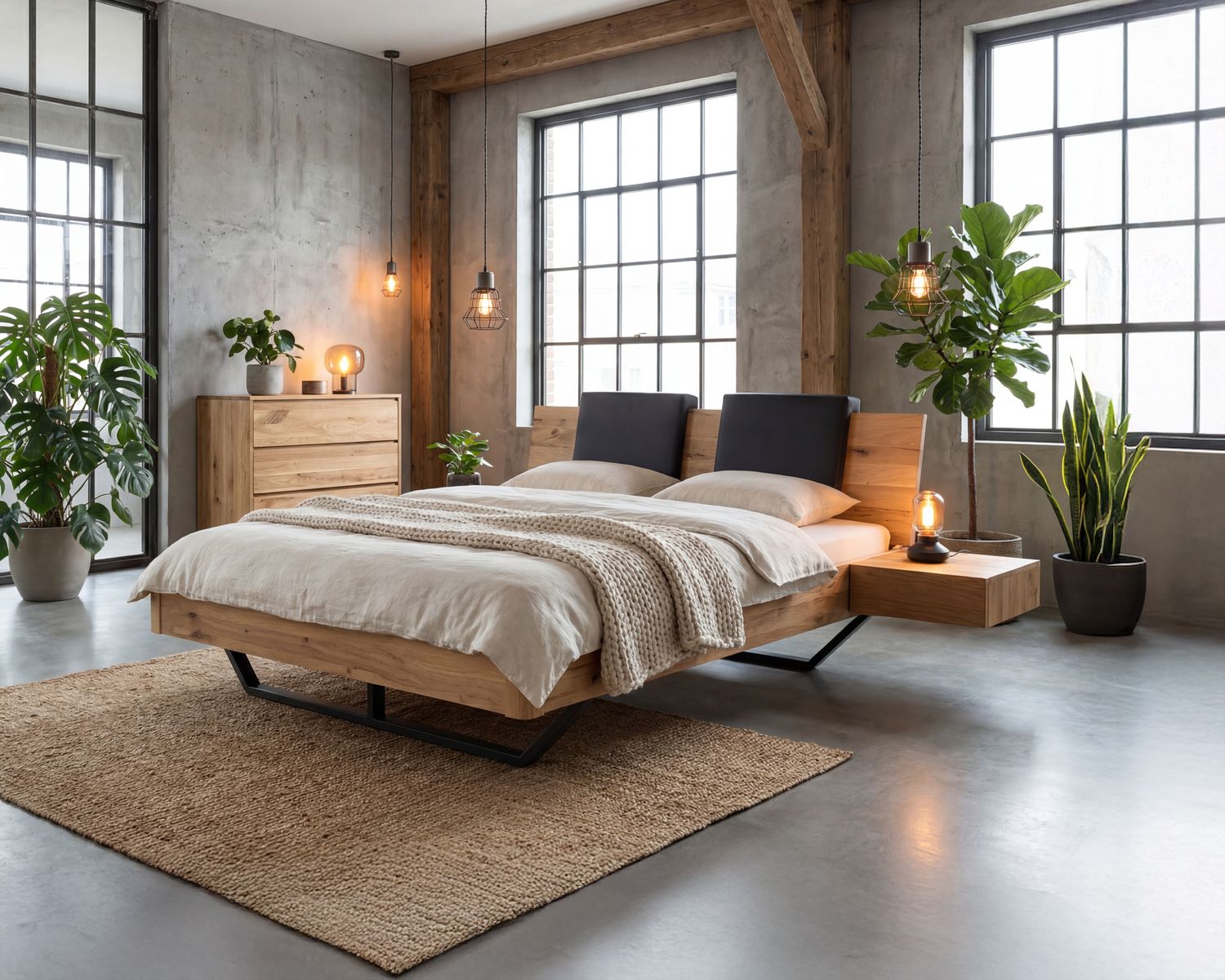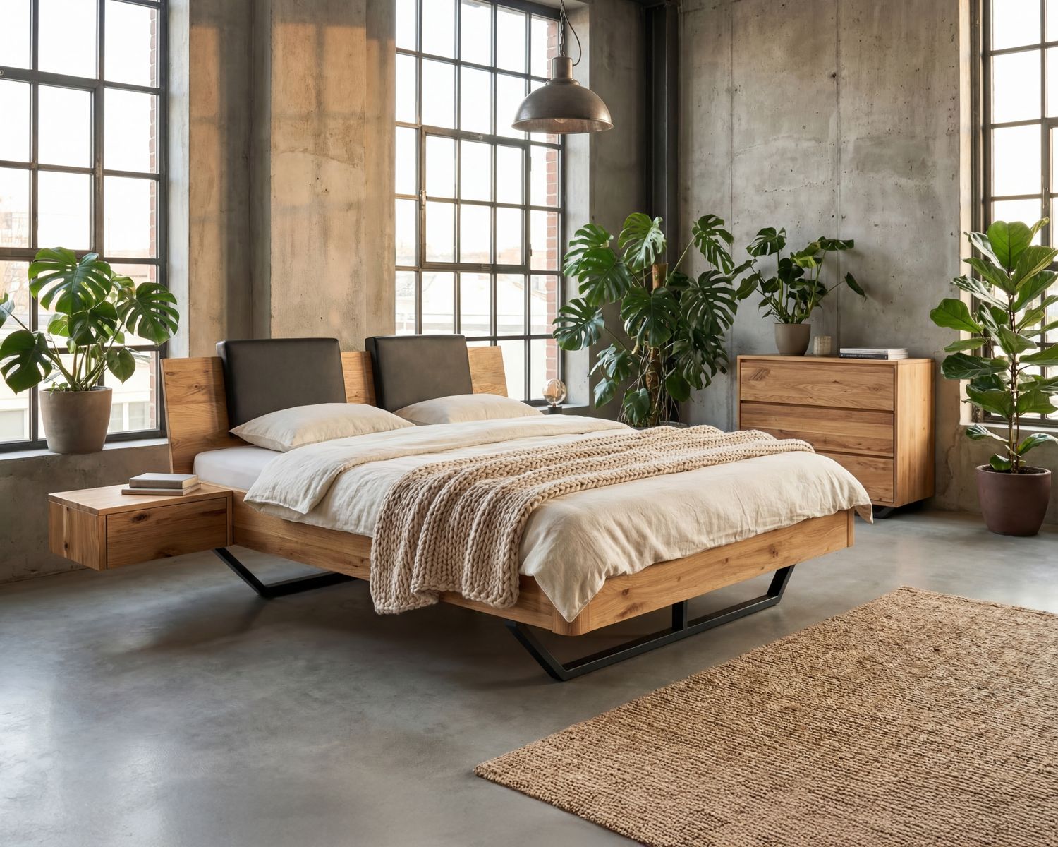 Bei diesem Bett Dolce Vita II haben wir das Kufen-Untergestell noch etwas modifiziert und aus massivem Schwarzstahl gefertigt. Der Stahl und die Wildeiche verleihen dem Bett eine ganz besondere Optik!